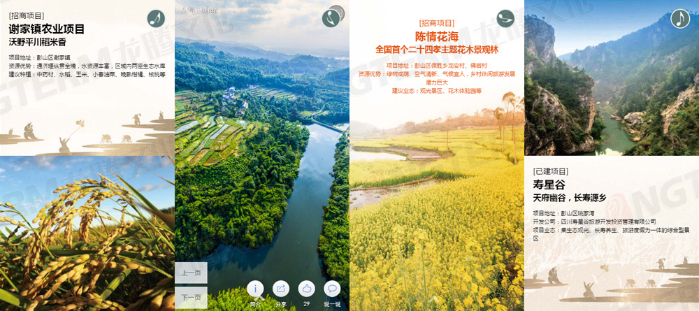 本項(xiàng)目包含彭山宣傳H5頁(yè)面設(shè)計(jì)制作、彭山精品土地推介H5頁(yè)面設(shè)計(jì)制作、彭山土地推介會(huì)邀請(qǐng)函H5頁(yè)面設(shè)計(jì)制作,通過簡(jiǎn)約的設(shè)計(jì)和適量的CSS3動(dòng)畫,制作出精美的手機(jī)分享專題網(wǎng)頁(yè),可有效的傳播和推廣。