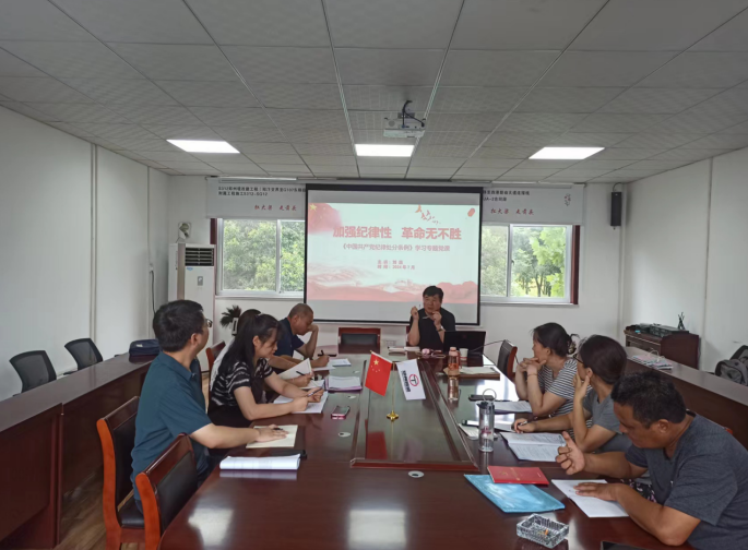 為進(jìn)一步深化黨紀(jì)學(xué)習(xí)教育,加強(qiáng)黨員干部的紀(jì)律性和黨性修養(yǎng),7月26日,騰盛公司黨支部在三李道班開展了以《加強(qiáng)紀(jì)律性革命無不勝》為主題的黨課學(xué)習(xí)活動(dòng)。本次黨課由支部書記劉磊主講,公司黨員和入黨積極分子參加。